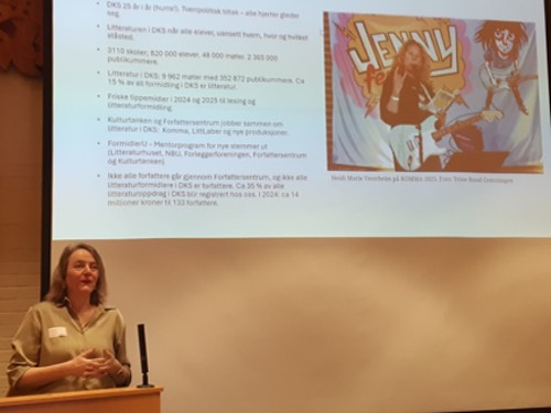 Norsk Forfattersentrum var sjølvsagt representert då eit samla litteraturfelt møtte den relativt ferske Familie- og kulturkomiteen for å gi dei innføring i dei ulike organisasjonane og vilkåra til norsk litteratur. Dagleg leiar Ingvild Christine Herzog presenterte og representerte organisasjonen vår, og fortalde komitemedlemmene korleis litteraturformidlinga i Den kulturelle skolesekken verkar.